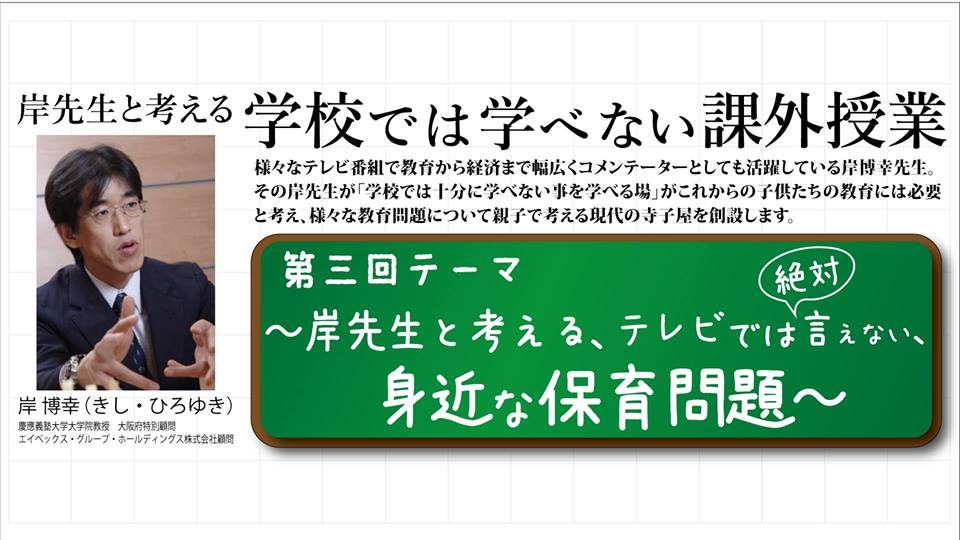 先日、岸博幸先生による課外授業「テレビでは言えない身近な保育問題」に